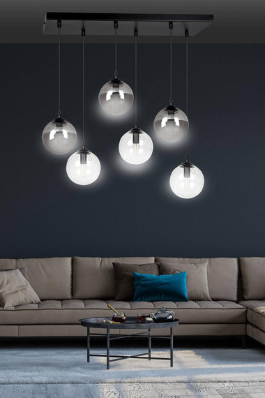 - Dodaj nowoczesny styl do każdego pomieszczenia z Zwis COSMO 6 BL MIX2 czarny (714/6M2) - Emibig. Elegancki design w czarnym wykończeniu z dymionymi szklanymi kloszami tworzy przytulną atmosferę. Idealny do salonu, jadalni czy biura.