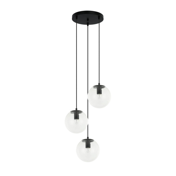 - Italux Sarpo PND-58867-3S-BK – minimalistyczna lampa wisząca z trzema szklanymi kulami i czarną oprawą. Idealna do wnętrz w stylu loft, nowoczesnym i japandi.