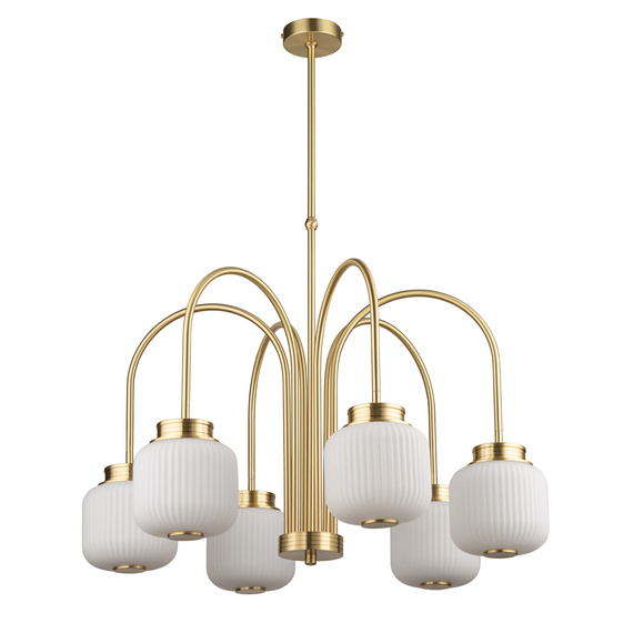 Lampa wisząca Kutek ALB-ZW-6(ZM) Alba to propozycja dla osób poszukujących stylowego i eleganckiego oświetlenia do salonu lub jadalni. Jej ponadczasowy design bazujący na tradycyjnych formach doskonale łączy klasykę z funkcjonalnością, przez co odnajdzie się zarówno w nowoczesnych, jak i klasycznie urządzonych wnętrzach. Lampa wisząca do salonu marki Kutek to także element dekoracyjny, który skupia na sobie uwagę każdego, kto przekroczy próg twojego mieszkania.